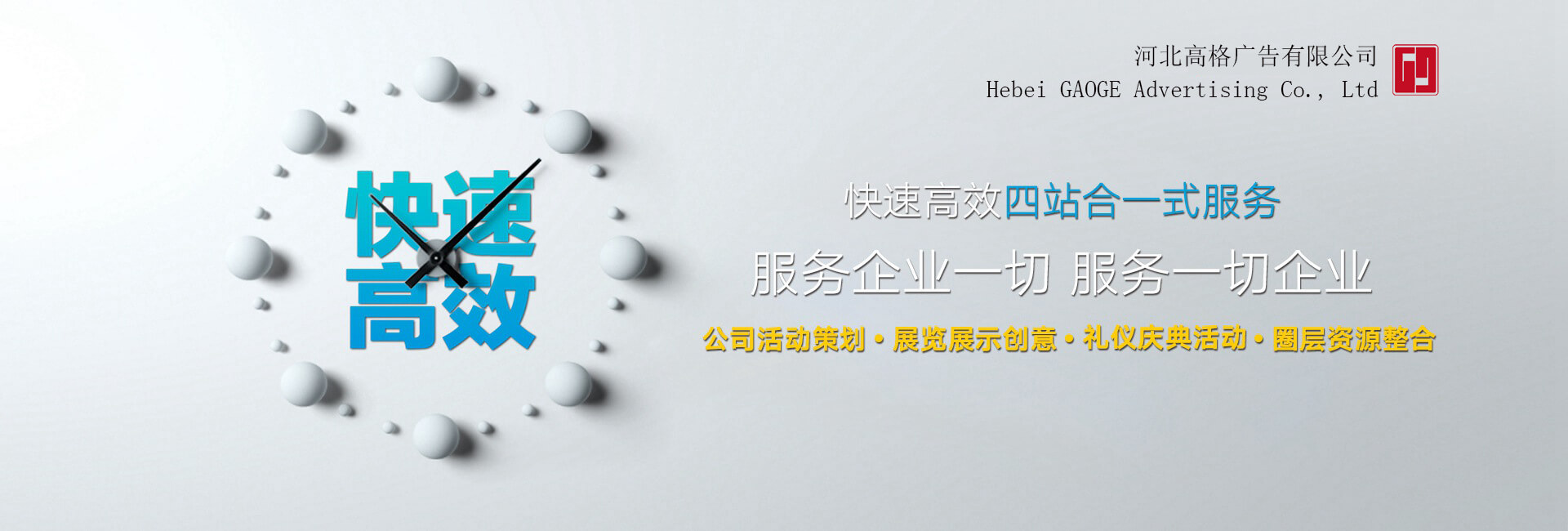 河北高格廣告有限公司是一家專業(yè)致力于大型文化活動組織策劃、展覽展示工程策劃、展臺設計制作、特裝展臺搭建、會議會場布置、巡回展覽、路演、公關推廣執(zhí)行、會議慶典禮儀、路演設備租賃、倉儲等一站式的專業(yè)服務公司。本公司憑借創(chuàng)新領先的服務理念,大型的廠房空間,現(xiàn)代化的機械設備,高素質專業(yè)的服務團隊,及在該行業(yè)多年的實戰(zhàn)經(jīng)驗,為地產(chǎn)營銷提供了優(yōu)秀的活動方案、為不同行業(yè)的數(shù)千家企業(yè)提供了專業(yè)個性化的空間展示方案,幫助客戶實現(xiàn)了自我品牌的提升和企業(yè)利潤的雙贏。...
